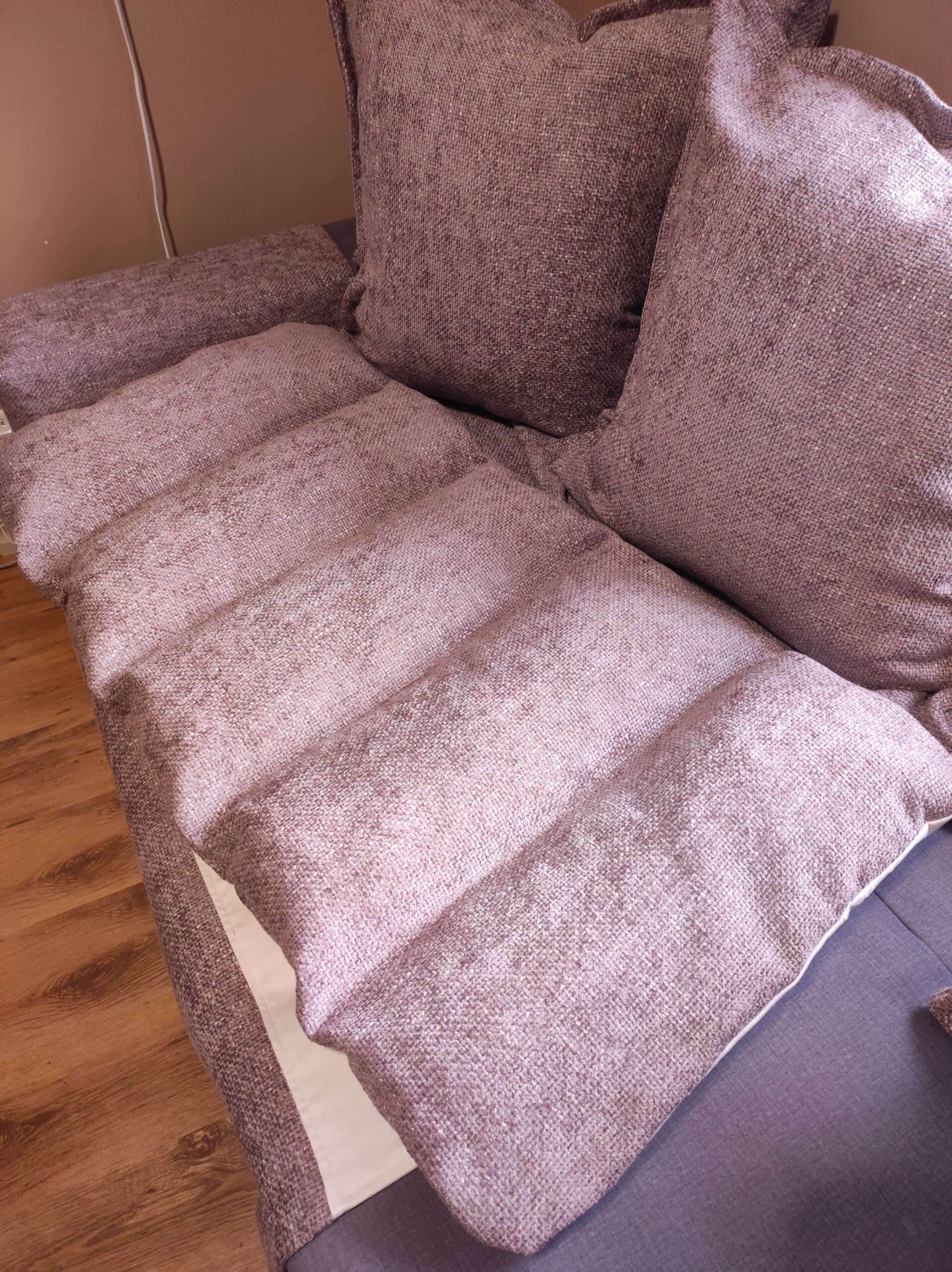 Mööblikangast, kate ei käi maha, on läbi õmmeldud.