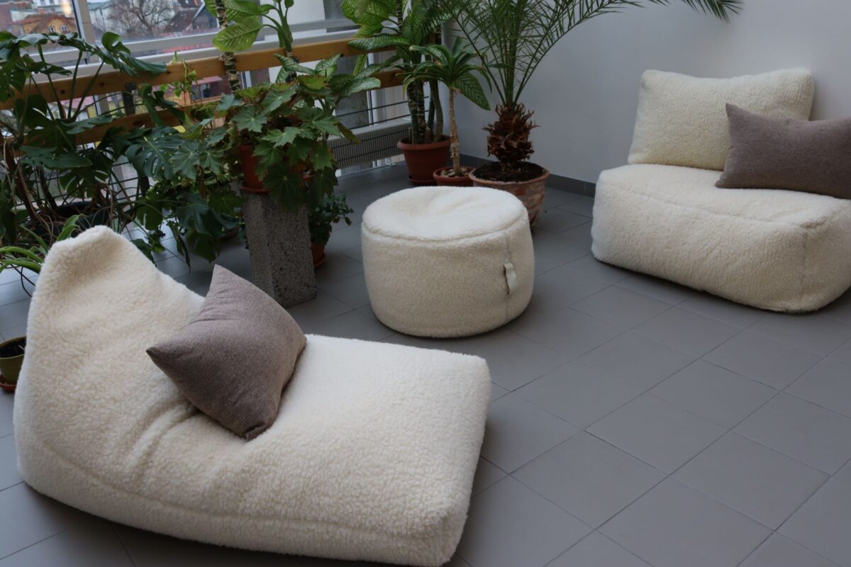 Täidetud kott-tooli graanulitega (küljel ava nende lisamiseks).