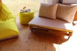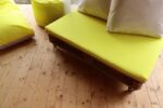 Madrats euroalustest terrassimööblile, aiapingile, kasutamiseks ka põrandal, trepiastmel või mujal, kus pehmet istumiskohta vaja. Kahtepidi kasutatav, neutraalne helebeez ja päikeseline kollane.